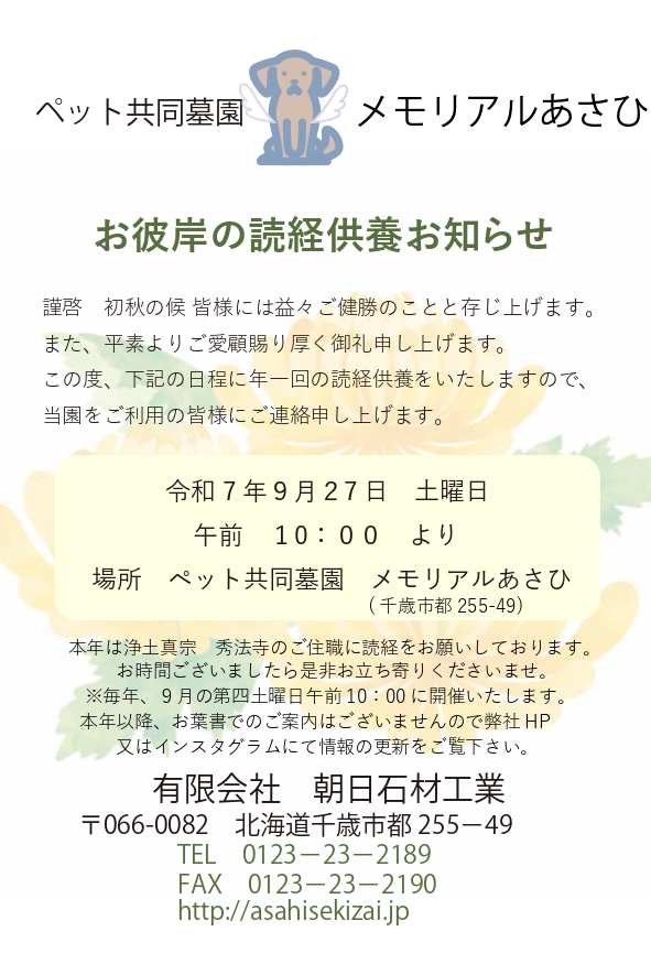 年一回の読経供養のお知らせです